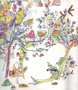 Al punto dos mozos y dos criadas del meson, vestidos de tela de oro, y los cabellos prendidos con lazos de lo mismo, los convidaron á que se sentaran á mesa redonda. Sirviéron en ella quatro sopas con dos papagayos cada una, un buytre cocido que pesaba doscientas libras, dos monos asados de un sabor muy delicado, trescientos colibríes en un plato, y seiscientos páxaros-moscas en otro, exquisitas frutas, y pastelería deliciosa, todo en platos de cristal de roca; y los mozos y sirvientas del meson escanciaban varios licores sacados de la caña de azúcar.