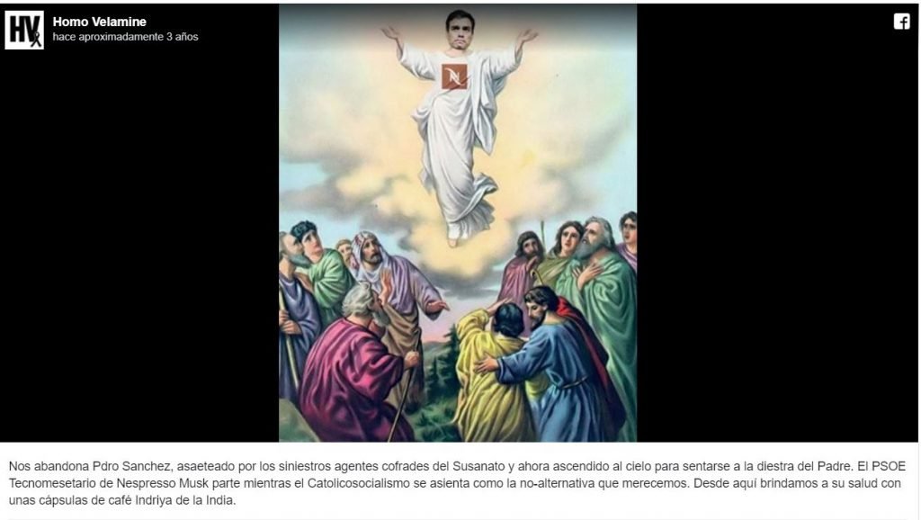 Pues bien, con más o menos acierto, con mejor o peor gusto, el colectivo Homo Velamine, que se define como ultrarracionalista, pretende explorar aquellas acciones colectivas en las que la gente parece que actúa irracionalmente pero que, según entienden, tienen “una lógica, pero esta va más allá de la razón y a menudo está definida por las apetencias o instintos”, según se explica en su página web (ver aquí). Entre otras actividades, el colectivo organiza lo que denominan “actos ultrarracionales” en los que toman el pulso a la sociedad publicando noticias en principio absurdas –o quizá no tan absurdas– que provocan el estallido de intensos debates públicos: así, “Una bandera de España a favor de la independencia de Catalunya” (marzo de 2019) o “La candidatura de Florentino Pérez a las elecciones, silenciada por los medios” (noviembre de 2019). Actos sin duda provocadores y cargados de sátira.