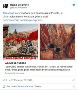 De hecho, si hay algo lamentable es ponerse a despotricar sobre la brutalidad, estupidez e indigencia moral del Pueblo sólo cuando el resultado electoral no comulga con tu voto. Nuestra audiencia sabe que puede confiar en esta revista, que lleva ya cuatro años alabando a todo el Pueblo sin matices y poetizando la conversión del Homo sapiens primero en Homo velamine y después -confiamos- en algo aún más indescriptiblemente bello.