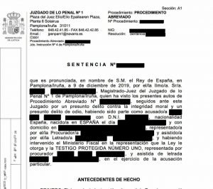 El juzgado de lo penal de Pamplona condena a Homo Velamine a un año y medio de prisión y una indemnización de 15.000 euros. Al final de este artículo puedes ver la sentencia completa y los motivos de la jueza.