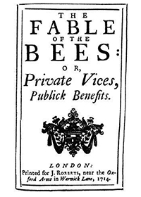Todo comienza con la visión de Bernard Mandeville (1670-1733), y su "Fábula de las abejas", conforme a la cual "los vicios privados hacen la prosperidad pública".