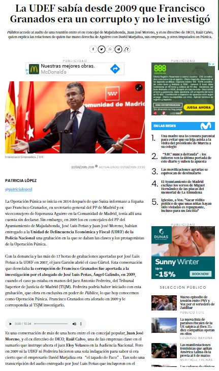 A José Luis Peñas se le conoce por destapar la trama Gürtel tras haber grabado y llevado a la UDEF horas de conversaciones de Francisco Correa. Pero, como destapó Público en agosto de 2015, su compañero Juan José Moreno grababa a la par a Raúl Calvo, ejecutivo de Dico y jefe de Díaz Pintado, y este confesaba en dichas grabaciones las claves de lo que hoy conocemos como Operación Púnica: "Marjaliza es el tapado de Paco [Granados]" o "Esperanza Aguirre lo sabe".