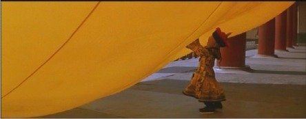 Hay momentos en que la cámara, al igual que Pu-Yi, se encuentra prisionera. Hay movimientos que parecen no ir a ninguna parte. Giros completos de la cámara sobre sí misma para volver al punto de partida. Se muestra el sentido de inutilidad ante un movimiento constante con el que se intenta llegar a un determinado lugar. Movimientos que también tratan de “buscar” lo que existe fuera del recinto sagrado. Un lugar que no puede ser traspasado. Imposible intento de ver e ir más allá del lugar en el que se encuentra el emperador, grande y al mismo tiempo desdichado.