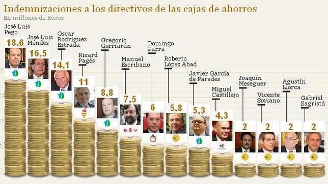 10. José Luis Pego, ex-director general de NovaCaixaGalicia. Pactó el pago de 18,6 millones euros, en concepto de indemnización y pensión. NovacaixaGalicia, entidad en quiebra.