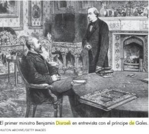 La joven soberana, a cuya casa fue en tiempos Dizzi, en compañía de su vieja amigo Lyndhurst, era ya una reina austero y poderosa. Comenzaba a acostumbrarse poco a poco a Disraeli, tratándolo, así como a su mujer, con gran bondad. El príncipe Alberto murió el año antes.