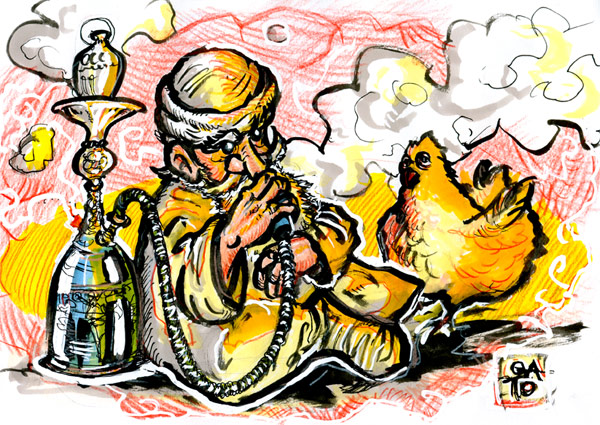 Un anciano sabio había llegado a la aldea desde más allá de Ashsharq, un lejano territorio de Oriente. Sus exposiciones filosóficas eran tan abstrusas, y sin embargo tan fascinantes, que los parroquianos de la casa de té llegaron a pensar que quizá podría llegar a revelarles los misterios de la vida.