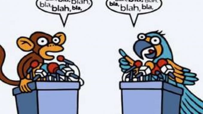 Me he divertido (?), con una escritura periodística y colérica, entrando en este revoltijo del día que pasa y de los años inmediatos pero, en verdad, no llego a izar mi bandera en ninguno de los dos campos y me pregunto si los enfrentamientos de politicastros que relatan las radios, los periódicos y las televisiones no son, todos ellos, bajo avatares diversos, más que el signo de una misma nulidad.