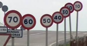 "Por otra parte los criterios técnicos por los que se rige la señalización de carreteras se basan en un compromiso entre un gran número y variedad de factores: por ejemplo las velocidades reales de circulación, la habilidad y reflejos de los conductores, las circunstancias ambientales, la densidad de la circulación, estado de los vehículos y de su carga, etc, etc. Según la valoración que se haga de dichos factores, muy variables en sí mismos, la señalización más conveniente podría ser una u otra."