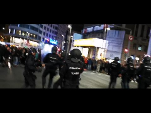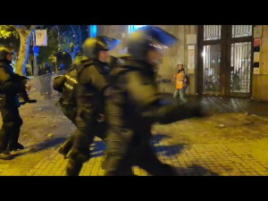 VIDEO 6. Police in riot gear fired rubber bullets, and used batons and police vans to disperse a few hundred young protesters