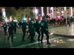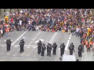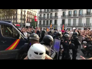 VIDEO 54. Just watched rows of police run up the main parade in Barcelona shooting rubber bullets into crowds of people