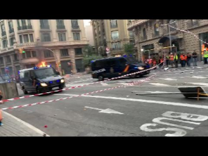 VIDEO 86. Moments de tensió a la plaça Urquinaona. Els agents de la @policia intenten passar per sobre de la seguda