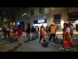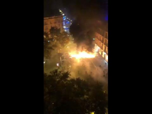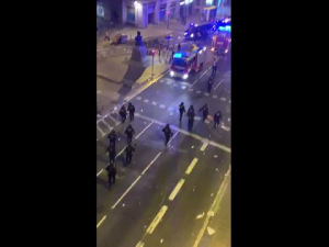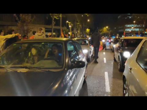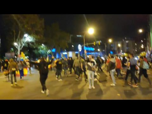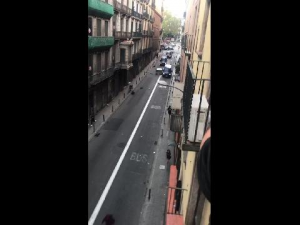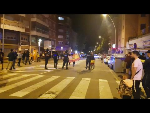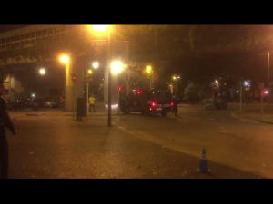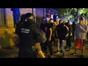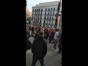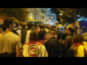 VIDEO 38. Els ultres diuen que baixen cap a Gràcia. Criden: "Estas ratas donde están?". Son uns 200 i estan molt envalentonats.