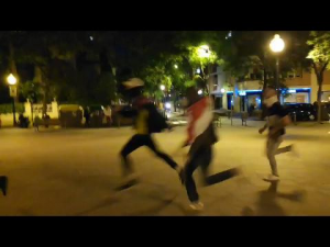 VIDEO 37. Els ultres espanyolistes diuen que van a caçar. Apreten a correr pels carrers de Sarrià.