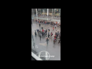 VIDEO 55. Un motorista intenta atropellar manifestants que caminen per gran via direcció aeroport! Vigileu!