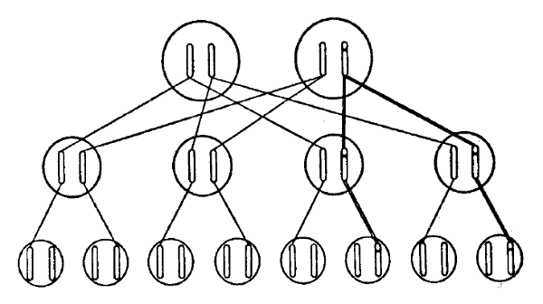 Las mutaciones recesivas, mientras estén en heterozigotos, no presentan, desde luego, un material de trabajo para la selección natural. Aunque sean perjudiciales, cosa que ocurre muy a menudo con las mutaciones, no resultan eliminadas, ya que se encuentran latentes. En consecuencia, se puede acumular una cantidad considerable de mutaciones desfavorables, sin suponer un perjuicio inmediato. Pero, evidentemente, son transmitidas a la mitad de la descendencia, y esto tiene importantes consecuencias para el hombre, para el ganado, aves domésticas, y cualquier otra especie, allí donde nos interese mantener o aumentar las buenas cualidades físicas. En la figura 3, suponemos que un individuo macho (digamos, en concreto, yo) lleva heterozigóticamente una mutación perjudicial, de forma que no se manifiesta. Supongamos que mi mujer no la lleva. Entonces, la mitad de nuestros hijos (segunda línea) también los llevaran (otra vez heterozigóticamente). Si todos ellos se casan con parejas no mutadas (que hemos omitido en el diagrama para evitar confusiones), un cuarto de nuestros nietos, por término medio, estará afectado de la misma forma.