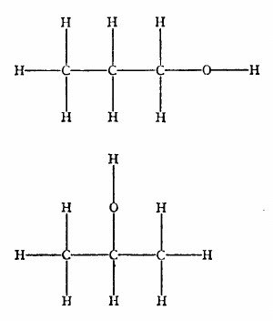 Empecemos por los hechos empíricos. Los químicos saben que el mismo grupo de átomos puede unirse de más de una manera para formar una molécula. Tales moléculas son denominadas isómeros (formadas por las mismas partes; ισος = igual, μερος = parte). La isomería no es una excepción, sino la regla. Cuanto mayor es la molécula, más alternativas isoméricas se le ofrecen. En la figura 1 se muestra uno de los casos más simples, los dos tipos de alcohol propílico o propanol, cuyas moléculas tienen ambas 3 carbonos (C), 8 hidrógenos (H), y un oxígeno (O). Este último puede ser interpuesto entre cualquier hidrógeno y su carbono, pero solamente los dos casos mostrados en la figura son sustancias diferentes. Y lo son en la realidad. Todas sus constantes físicas y químicas son claramente diferenciables. También sus energías son distintas, representan niveles diferentes.
