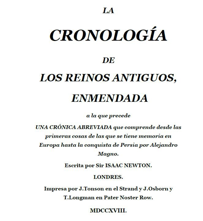 "La importancia que The Chronology of Ancient Kingdoms Amended tenía para su propio autor se puede deducir por el tiempo que Newton dedicó. Le dedicó más tiempo que a ninguna de sus otras obras, incluidas las científicas. Trabajó en ella a lo largo de más de cuarenta años, aunque no fue publicada hasta 1728, un año después de su muerte. En ella, aborda las cronologías de las primeras grandes civilizaciones, estudia a todos los escritores de las civilizaciones antiguas. Compara las fechas y los datos y así deduce las contradicciones que presentan. Investiga las fuentes históricas. Destaca las inconsistencias lógicas y las exageraciones que habían calado en el imaginario colectivo de aquella época como hechos verídicos e históricos".