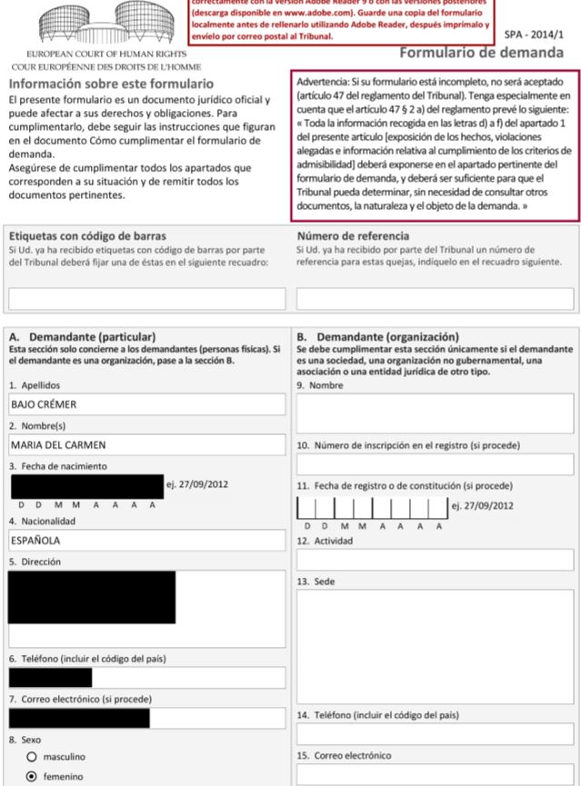 [4] Formulario de demanda ante TEDH y Escrito de Explicaciones Suplementarias sobre Hechos y Quejas (descargas)