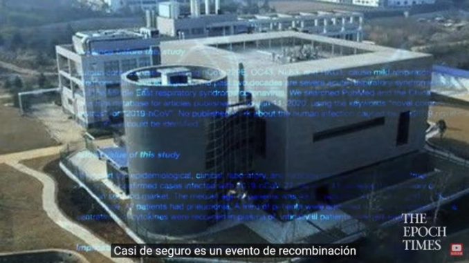 En el canal de YouTube Crossroads, del periódico internacional The Epoch Times, el periodista Joshua Philipp trazó un camino alternativo que conduce al laboratorio de bioseguridad nivel 4 del Instituto de Virología de Wuhan, donde, como agravante, el SARS-CoV-2 podría haber sido un diseño o recombinación de fragmentos de distintos virus para facilitar su ingreso a los humanos, parte del estudio que realiza la científica Shi Zhengli.