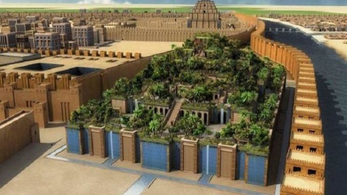 Beroso nos dice que Nabucodonosor construyó unos jardines colgantes sobre arcos porque su esposa era meda y se deleitaba con los terrenos montañosos como los que abundaban en Media pero que eran escasos en Babilonia. Ella era Amitis, la hija de Astiages y hermana de Ciáxares, reyes de los medos. Nabucodonosor se casó con ella por una unión entre las dos familias contra el rey de Asiria, pero puede que Nitocris fuera otra mujer que, durante el reinado de su hijo Labinito, rey voluptuoso y malvado, se ocupara de los asuntos de este, y para asegurarse su reino contra los medos hizo los trabajos antes mencionados. Esta es la reina mencionada en Daniel, cap. V. ver. 10.