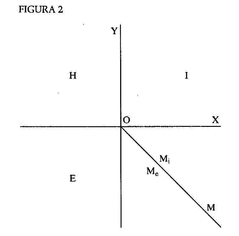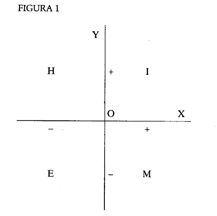 Para aclarar las cosas, pongamos un ejemplo hipotético refiriéndonos a la figura 1. Ticio realiza una acción en la que implica a Cayo. Si Ticio consigue una ganancia por su acción y esta misma acción le reporta a Cayo una pérdida, la acción ha de ser registrada en la gráfica con un signo que aparecerá en algún punto del área M.