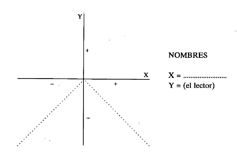 Tanto si uno pertenece al tipo eremita como si pertenece al tipo mundano, en cualquier caso tiene que tratar con la gente, si bien con intensidad diferente. De vez en cuando también los eremitas se encuentran con personas. Además, uno se pone en relación con los seres humanos incluso evitándolos. Lo que podría haber hecho por un individuo o por un grupo, y no lo he hecho, representa un 'costo de oportunidad' (es decir, una ganancia frustrada o una pérdida) para aquella persona concreta o grupo concreto. La moraleja es que cada uno de nosotros tiene una especie de cuenta corriente con cada uno de los demás. De cualquier acción, u omisión, cada uno de nosotros obtiene una ganancia o una pérdida, y al mismo tiempo proporciona una ganancia o una pérdida a algún otro. Las ganancias y las pérdidas pueden ser ilustradas oportunamente por una gráfica, y la figura 1 muestra la gráfica base utilizable para este fin.