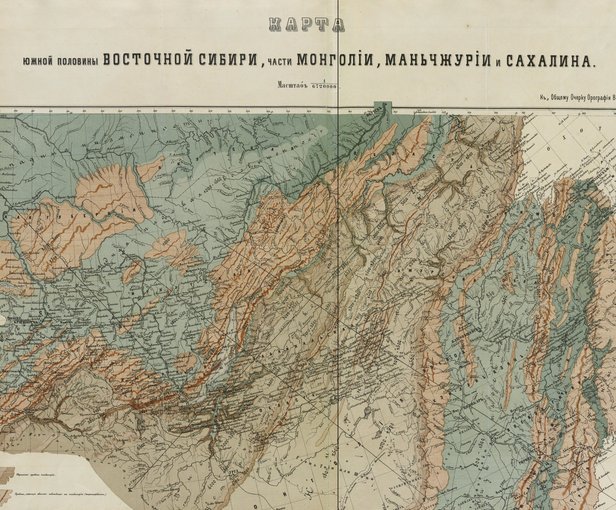 Mapa de la mitad meridional de Siberia oriental y partes de Mongolia, Manchuria, y Sakhalin