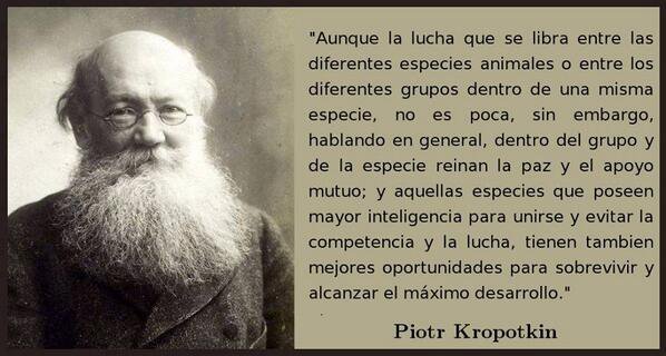 Debido a las razones ya expuestas, cuando más tarde las relaciones entre el darwinismo y la sociología atrajeron mi atención, no pude estar de acuerdo con ninguno de los numerosos trabajos que juzgaban de un modo u otro una cuestión extremadamente importante. Todos ellos trataban de demostrar que el hombre, gracias a su inteligencia superior y a sus conocimientos puede suavizar la dureza de la lucha por la vida entre los hombres pero al mismo tiempo, todos ellos reconocían que la lucha por los medios de subsistencia de cada animal contra todos sus congéneres, y de cada hombre contra todos los hombres, es una "ley natural". Sin embargo, no podía estar de acuerdo con este punto de vista, puesto que me había convencido antes de que, reconocer la despiadada lucha interior por la existencia en los límites de cada especie, y considerar tal guerra como una condición de progreso, significaría aceptar algo que no sólo no ha sido demostrado aún, sino que de ningún modo es confirmado por la observación directa.