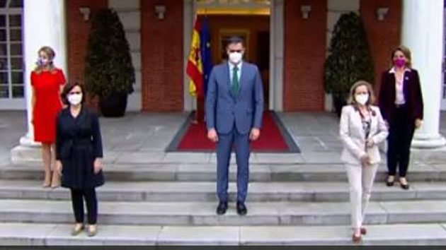 ¿EL FEMINISMO ERA ESTO? El Jefe, en el medio. Las Vicepresidentas, a su alrededor.
