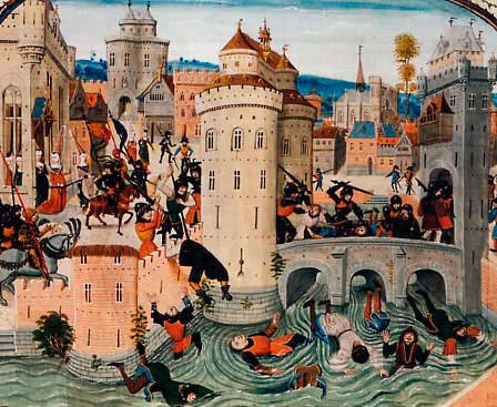 La enorme mayoría de las ciudades hubo de luchar durante cincuenta y cien años, y a veces más, para alcanzar el primer reconocimiento de sus derechos a una vida libre, y otro siglo más antes de que consiguieran afirmar su libertad sobre una base sólida; las Cartas del siglo XII fueron solamente los primeros pasos hacia la libertad. En realidad, la ciudad medieval era un oasis fortificado en un país hundido en la sumisión feudal, y tuvo que afirmar con la fuerza de las armas su derecho a la vida.