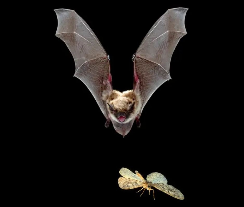Una hembra de la especie persigue una polilla en Oregon, Estados Unidos. Crédito: Michael Durham/Minden Pictures, Bat Conservation International.