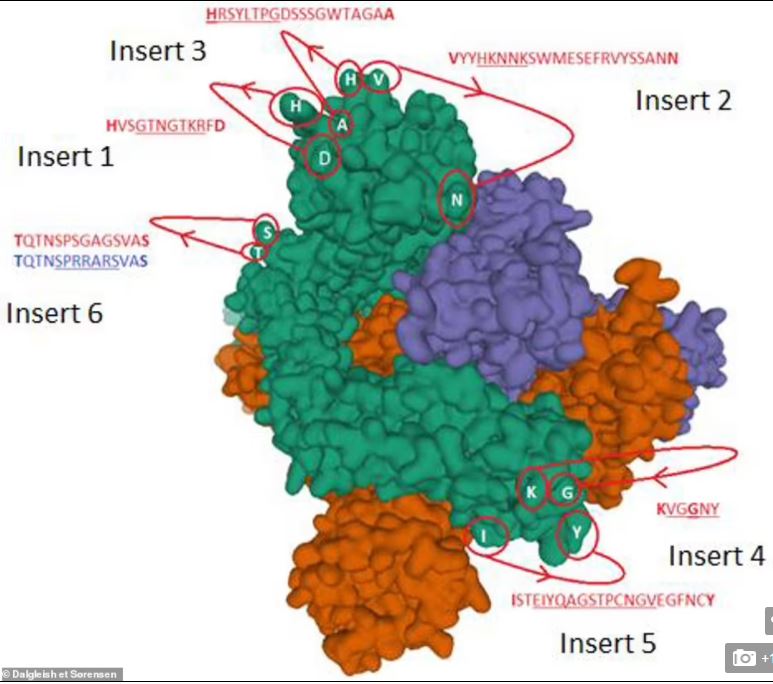 “Las leyes de la física significan que no se pueden tener cuatro aminoácidos cargados positivamente seguidos. La única forma de obtener esto es si lo fabrica artificialmente'', dijo Dalgleish a DailyMail.com.