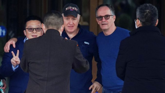 El Dr. Daszak y el jefe de investigación de la OMS, el Dr. Peter Ben Embarek, posan para fotografías en China - Crédito: Reuters