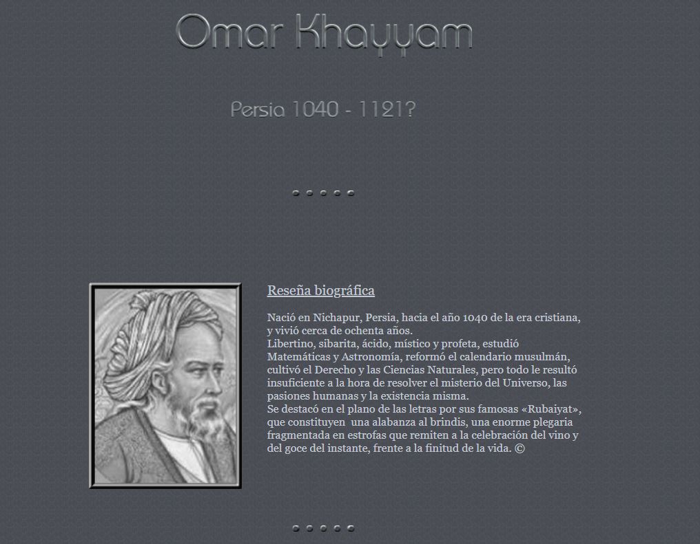 Los versos han sido tomados de la obra «Rubaiyat» en la versión de Joaquín V. González, de la versión inglesa de Edward Fitzgerald. (Texto íntegro, de acuerdo con el original).