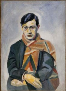 En este óleo, Retrato de Tristan Tzara, Robert Delaunay representa al creador del movimiento dadaísta, que fue gran amigo de la pareja formada por el propio Robert y su esposa Sonia. La obra pertenece al período en que el pintor vuelve a la figuración, antes de abandonarla definitivamente a partir del año 1930. La figura del modelo, que lleva una bufanda como las que diseñaba Sonia, se resuelve mediante amplias pinceladas, de acuerdo con la técnica simultaneísta. Aunque este lienzo no encaja exactamente en los parámetros del orfismo, podría considerarse, sin embargo, heredero de esa corriente, ya que posee todavía las constantes del período más característico de Robert Delaunay, basado en el protagonismo del color y en la aplicación de la ley de los contrastes simultáneos. En efecto, junto a una serie de figuras geométricas, que apuntan ya a la abstracción, y que se utilizan a modo de motivos decorativos en el foulard, el rostro del retratado acusa todavía un tratamiento cromático que habla de la importancia que Delaunay concedía a este elemento en el contexto del orfismo.