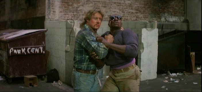 Es la postura de Roddy antes de ponerse las gafas cuando le dice a John que seguirá trabajando y esperando su oportunidad, pero también es la misma resistencia que muestra John a ponérselas, todo y su aparente belicosidad... el personaje donde todo queda en mera queja y definitivamente en la impotencia.