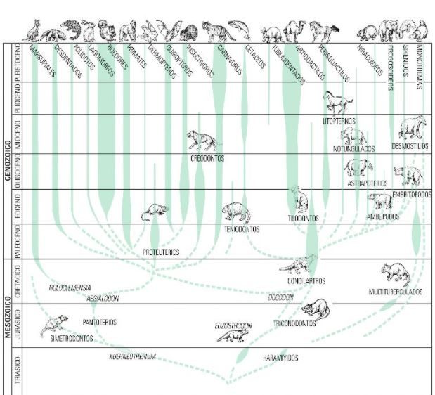 El "bigbang" de los mamíferos es incluso más espectacular que la de los invertebrados del Cámbrico: todos los órdenes de mamíferos actuales aparecen a la vez y de repente, hace unos 65 millones de años.