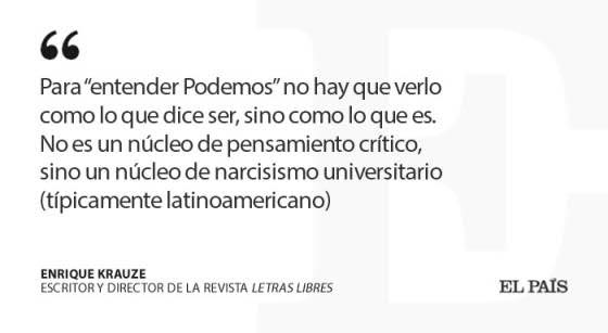 Para “entender Podemos” no hay que verlo como lo que dice ser, sino como lo que es. No es un núcleo de pensamiento crítico, sino un núcleo de narcisismo universitario (típicamente latinoamericano) como el que ha estudiado desde hace cuarenta años el mexicano Gabriel Zaid. En De los libros al poder escribe: la universidad otorga credenciales de saber para escalar en la pirámide del poder. A veces, ese asalto al poder ha sido pacífico, otras no. En América Latina, a partir de la construcción imaginaria de la universidad como nueva iglesia, varias generaciones de universitarios buscaron imponer a la realidad la maqueta ideal de la sociedad perfecta. La guerrilla latinoamericana (en Perú, Centroamérica) no fue campesina, ni obrera ni popular: la encabezaron profesores y estudiantes. Si la realidad no se ajustaba a sus teorías, peor para la realidad. Para nuestros países, el costo histórico de la guerrilla universitaria ha sido inmenso.