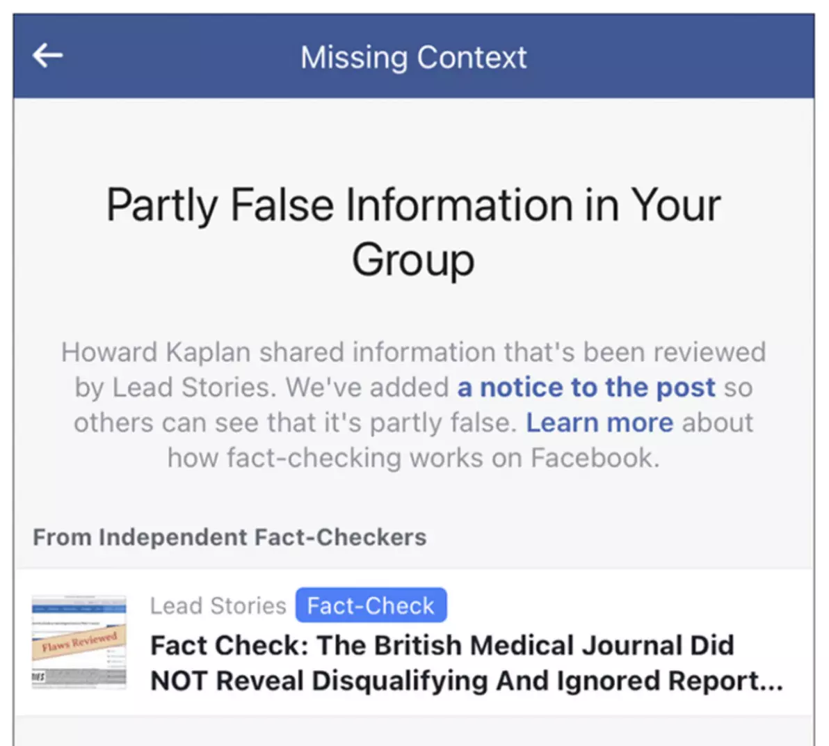 Pronto, los lectores de BMJ empezaron alertar a la revista sobre la censura de sus contenidos ejercida por Facebook. La red social redirigía a los lectores a una "verificación de hechos" realizada por 'Lead Stories', una de las diez empresas contratadas por Facebook en Estados Unidos, cuyo lema es "desacreditar las noticias falsas a medida que suceden". Un ultimo análisis año mostró que Lead Stories era responsable de la mitad de todos verificaciones de datos de Facebook.