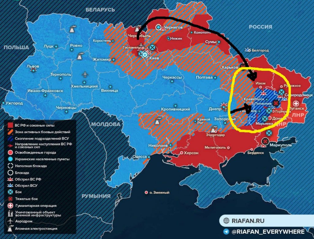 Rusia, en estos momentos, está trasladando sus unidades hacia el teatro de operaciones del Donbas, lo que está aprovechando para realizar la correspondiente rotación de estas -en Siria, los rusos suelen realizar la rotación de sus unidades militares en el teatro de operaciones cada 3 o 4 semanas-, de tal forma que, una vez cumplida su misión, las que realizaron el envite y la fijación sobre Kiev y Kharkov, cruzan de vuelta la frontera norte de Ucrania hacia Bielorrusia.