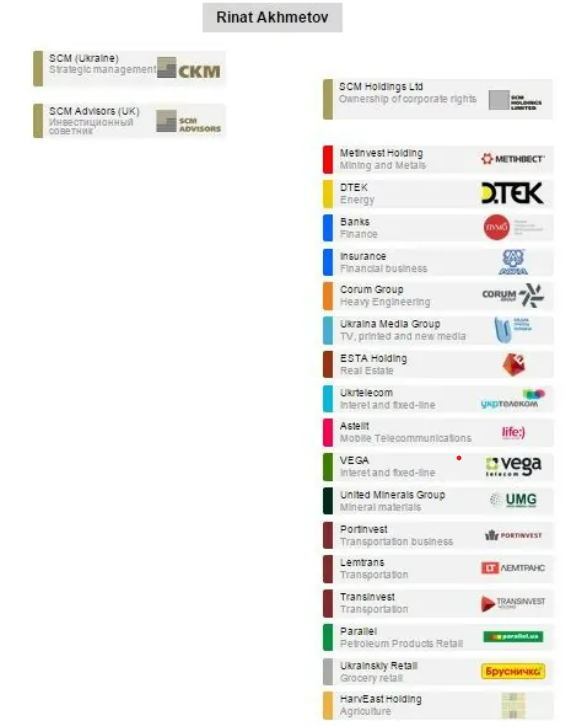 organizado. A partir de ahí, creó un imperio empresarial a partir de la minería y la metalurgia que luego extendió al sector inmobiliario, las telecomunicaciones, el transporte, las finanzas e incluso los medios de comunicación. No es de extrañar por tanto que se haya convertido en la persona más rica de Ucrania con cerca de 13.000 millones de dólares de patrimonio y un hombre con enorme poder en el este del país puesto que de sus empresas dependen directamente 300.000 empleos. Además, como buen oligarca, conocedor de la importancia del pan y el circo, en 1996 se hizo con uno de los símbolos del Donbass, el club de fútbol Shakhtar Donetsk, que a menudo ha utilizado como plataforma mediática y para aumentar su popularidad.