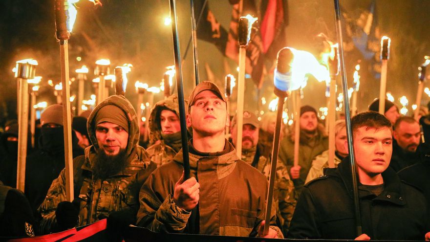 Junto a las fuerzas del Ejército ucraniano, que intentan resistir a la contraofensiva rusa, bien pertrechados por la OTAN y dirigidos por la inteligencia norteamericana y británica, combate un universo de organizaciones a las que lisa y llanamente pueden catalogarse de nazis, conformada esencialmente por elementos que pertenecieron a grupos de protección de la mafia ucraniana, carteles de trata, narcotráfico, contrabando y peñas de diferentes clubs de fútbol como la del Spartak, Metalist Kharkiv o el Dynamo Kiev, que emergieron a la luz pública en el inició movimiento que a fines de 2013 terminarían pocos meses después con el gobierno del presidente Víctor Yanukovich, lo que se conoció como la Euromaidán o Revolución de la Dignidad. Golpe alentado desde Washington, Varsovia, Londres y París y financiados fundamentalmente por el oligarca Petró Poroshenko, quien se recompensaría meses después con la presidencia del país (2014-2019), y a quien sucedería Volodímir Zelensky, el nuevo superhéroe de occidente (misionverdad.com).
