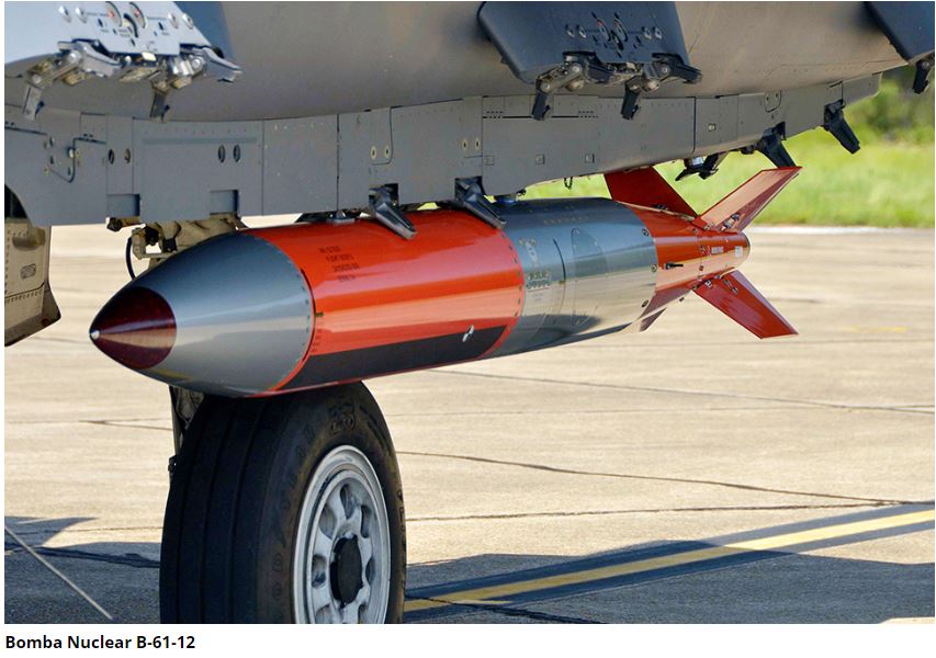 Por contra, los EE. UU. solo despliegan armas nucleares en su aviación basada en tierra dotada con bombas B-61, de las que apenas hay 150 desplegadas en bases OTAN en Europa. Esto deja los aeródromos del continente casi inermes ante un ataque nuclear balístico y de misiles de crucero de alcance intermedio rusos, a lo que ha de sumarse el hecho de que aviación es muy vulnerable a ser derribada (disminuyendo la probabilidad de llegada del arma nuclear al objetivo, un cálculo esencial en todo intercambio nuclear) y que, para colmo, se tardan muchas horas en preparar y ejecutar un ataque con aviación y bombas de caída libre. Los misiles de crucero AGM-86 con ojivas W80, al tener que ser disparados desde bombarderos estratégicos necesitan aún muchas más horas para preparar y ejecutar un ataque, y son misiles que en la actualidad son muy vulnerables a las defensas aéreas integradas.