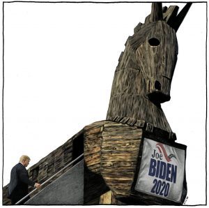 Solo hay una opción en esta elección. La consolidación del poder oligárquico bajo Donald Trump o la consolidación del poder oligárquico bajo Joe Biden. Los oligarcas, con Trump o Biden, volverán a ganar. Perderemos. Los oligarcas dejaron muy claro que si Bernie Sanders se convirtiera milagrosamente en el candidato del Partido Demócrata, unirían fuerzas con los republicanos para aplastarlo. Trump, si Sanders fuera el candidato, sería despojado instantáneamente por las élites del Partido Demócrata de sus demonios y su propensión a la tiranía. Sanders sería criticado, como lo fue con saña el viernes en The New York Times' “Mientras Bernie Sanders presionó para estrechar lazos, la Unión Soviética detectó una oportunidad” — y se convirtió en una figura de burla y ridículo. Los oligarcas nos predican el sermón de los peores cuando intentan meternos por la garganta a una Hillary Clinton o a un Biden, pero ellos mismos lo ignoran. Prefieren a Biden sobre Trump, pero pueden vivir con cualquiera.