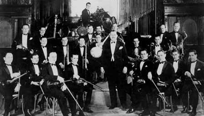 Paul Whiteman (1890-1967) creció en Denver, donde su padre era el supervisor musical de las escuelas públicas y su madre cantaba en coros de diversas sociedades culturales. Durante un breve período de tiempo tocó la viola en la Denver Symphony Orchestra y en la San Francisco Symphony Orchestra. En 1918, lideró varias orquestas de baile tanto en San Francisco como en Los Ángeles. En esta última ciudad conoció a Ferde Grofé que tocaba el violín en Los Ángeles Symphony y lo contrató como pianista y arreglista. En 1920, la banda se trasladó a Atlantic City y en la primavera de ese año grabó varias canciones entre las que se encontraba la titulada “Whispering” composición de John Schonberger (1920). Esta melodía con los arreglos de Ferde Grofé vendió más de un millón de copias y catapultó a Paul Whiteman y a su orquesta al séptimo cielo. El famoso restaurante neoyorquino Le Palais Royal contrató a la banda que pasó a denominarse “Paul Whiteman and his Palais Royal Orchestra” y se convirtió en la más popular del país. Su paso por los escenarios de Broadway en el musical “Scandals” de 1923 con música de George Gershwin e interpretando canciones como “I’ll built a stairway to Paradise” cosechó un éxito sin precedentes y, como dice la canción, la situó en el paraíso musical norteamericano.