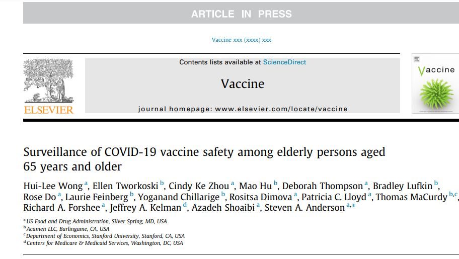 Este sistema de alerta temprana es el primero en identificar asociaciones temporales para PE, AMI, DIC e ITP después de la vacunación con BNT162b2 en ancianos. Debido a que un sistema de alerta temprana no prueba que las vacunas provoquen estos resultados, se están realizando estudios epidemiológicos más sólidos con ajustes por factores de confusión, incluida la edad y la residencia en hogares de ancianos, para evaluar más a fondo estas señales. La FDA cree firmemente que los beneficios potenciales de la vacunación contra el COVID-19 superan los riesgos potenciales de la infección por COVID-19.