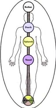 La mente debe concentrarse en la supuesta posición de estos centros uno por uno. Entonces deben entonarse y vibrarse ciertos nombres que deben considerarse como ritmos vibratorios. Finalmente, cada centro ha de visualizarse como teniendo un color y una forma particulares. La combinación de estos tres agentes despierta gradualmente los centros a partir de su latencia. Lentamente son estimulados al funcionamiento, cada uno de acuerdo a su propia naturaleza, vertiendo una corriente de energía y poder altamente espiritualizados en el cuerpo y la mente. Cuando finalmente su operación se hace habitual y estabilizada, el poder espiritual que generan puede ser dirigido a voluntad para curar varias aflicciones y enfermedades, tanto de naturaleza psicológica como física. Puede también ser comunicado por una simple imposición de manos a otra persona. Simplemente pensando con fijeza e intención, la energía puede incluso ser comunicada de mente a mente telepáticamente, o transmitida a través del espacio a otra persona a varias millas de distancia —no ofreciendo los objetos en el espacio ninguna interrupción u obstáculo a su paso. En primer lugar, la posición de los centros, tal como se muestra diagramáticamente, debe memorizarse. Deben estimularse a la actividad sentándose o tumbándose sobre la espalda en un estado perfectamente relajado. Las manos pueden recogerse en el regazo o bien, con los dedos cruzados, permitirse descansar sueltamente bajo el plexo solar. Debería inducirse la calma de la mente, y varios minutos dedicados a la respiración rítmica deberían resultar en la sensación de una suave ondulación sobre el diafragma. Imaginad después por encima de la región coronal de la cabeza una bola o esfera de luz blanca brillante. No forcéis a la imaginación para que visualice la esfera de luz. La fuerza sólo resultaría en el desarrollo de tensión neuromuscular, y esto impediría nuestro propósito. Hágase tranquila y fácilmente. Si la mente vaga, como de hecho lo hará, esperad un momento o dos y volvedla atrás suavemente. Al mismo tiempo, vibrad o entonad la palabra Eheieh, pronunciada como E-he-ie. Después de unos pocos días de práctica será fácil imaginar al nombre vibrando por encima de la cabeza en el centro llamado Espíritu. Esta es la divinidad inmanente o que cubre a cada uno de nosotros, el ser espiritual básico del que todos podemos extraer. Eheieh significa literalmente YO SOY, y este centro representa la conciencia interna del YO SOY.