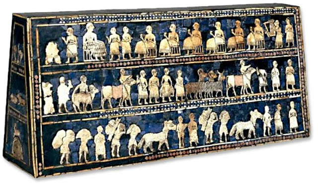 "El estandarte de Ur" hecho de conchas, cornalina, lapislázuli y betún el cual merece un tratamiento aparte...