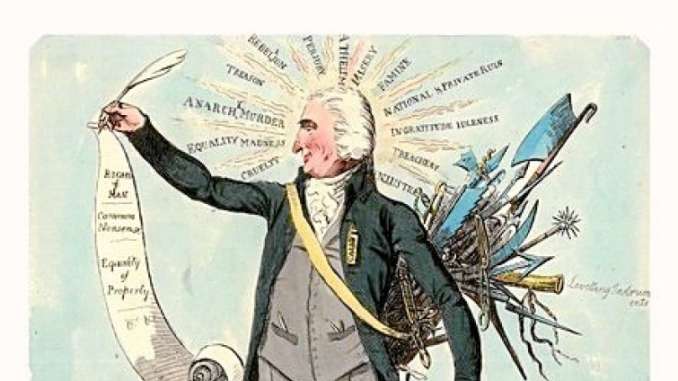 ¿Qué son los gobiernos actuales de Europa sino escenas de iniquidad y opresión? ¿Qué es el de Inglaterra? ¿No dicen sus propios habitantes que es un mercado donde todo hombre tiene su precio, y en el cual la corrupción es tráfico común a expensas de un pueblo engañado? No es de extrañar, pues, que se vilipendie a la Revolución Francesa. Si ésta se hubiera limitado meramente a la destrucción del despotismo flagrante, quizás el señor Burke y algunos otros se habrían quedado en silencio. Ahora su grito es: “Ha ido demasiado lejos”; es decir, ha ido demasiado lejos para ellos.