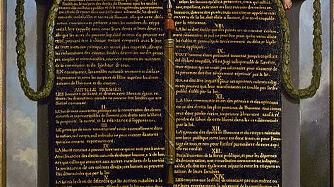 En consecuencia la Asamblea Nacional reconoce y declara, en presencia y bajo los auspicios del Ser supremo, los siguientes derechos sagrados del hombre y del ciudadano: